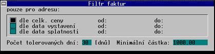 neuhrazené faktury. Po potvrzení volby program zobrazí kartu filtru, ve které