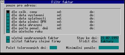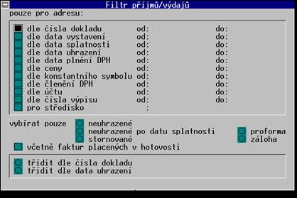 klávesy <F8> . Program nejprve nabídne filtr faktur a po vyplnění