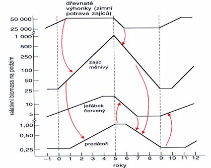 Konkrétně tento graf vyjadřuje 9-10leté populační cykly rysa kanadského a zajíce měnivého.