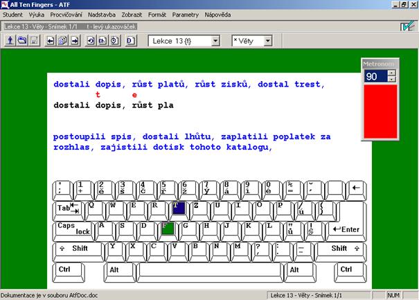 Po spustění je program ve "volném" rezimu. Program je plně funkční, ale na disk se nic nezapisuje. Vsechny funkce, včetně změny klávesnice, si v tomto rezimu můzeme plně vyzkouset. Tento rezim poznáme podle popisu v levém horním rohu "ATF - All Ten Fingers".