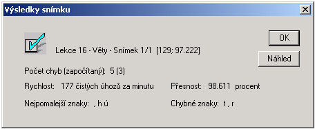 Příklad: Student napsal za 10 minut 1860 úhozů a měl ve snímku 5 započtených chyb.