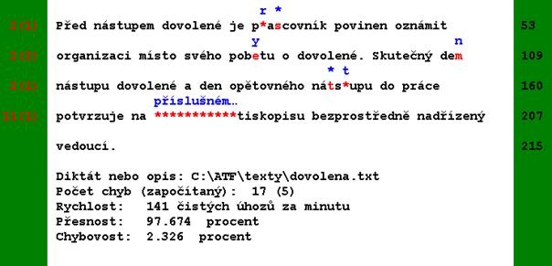Program určí počet hrubých úhozů (viz 7.1) a počet započtených chyb (viz 7.2).