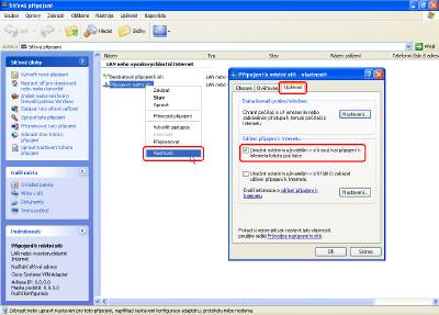 Kdyz se z PC dostaneme na internet i na nasi domácí síť, můzeme připojení snadno nasdílet i ostatním uzivatelům. Na síťové rozhraní, které je určené pro přístup k internetu (najdeme jej v Start, Nastavení, Síťová připojení), klikneme pravým tlačítkem a dáme "Vlastnosti...". Přepneme na zálozku "Upřesnit". No a zde stačí uz jen zaskrtnout volbu "Umoznit ostatním uzivatelům v síti vyuzívat připojení k Internetu tohoto počítače".