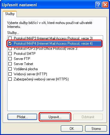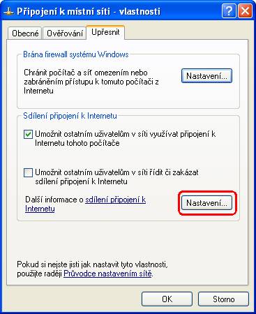 K nastavení přesměrování portů se dostaneme přes tlačítko "Nastavení..." na zálozce "Upřesnit".