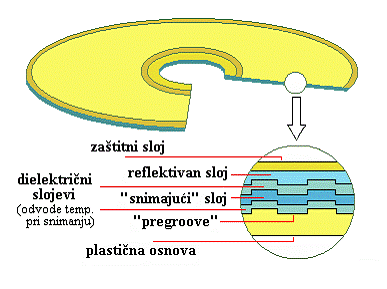 CD-R koristi format jedan upis - veći broj čitanja, kod koga je sloj
