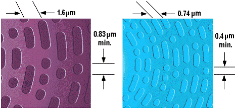 Prvo, trake su smestene blize jedna drugoj, dozvoljavajući stoga vise traka po disku. Sam prostor između traka je smanjen na 0.74 μm (kod CD-a je on 1.6 μm), a i brazde su manje (minimalna duzina brazde je 0.4 μm, naspram 0.834 kod CD-a). Smanjeno rastojanje i veličina brazdi same po sebi daju četvorostruko povećanje kapaciteta DVD-a u odnosu na CD. Smanjene brazdi znači da sad laser treba da generise smanjenu tačku, DVD ovo postize smanjenjem talasne duzine sa 780 nm infracrvene svetlosti kod CD-a, na 635 nm ili 650 nm crvene svetlosti.