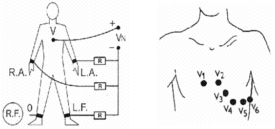 (Wilsonovu) svorku V. Zvody sú prepojené cez odpor R=5kΩ, aby sa