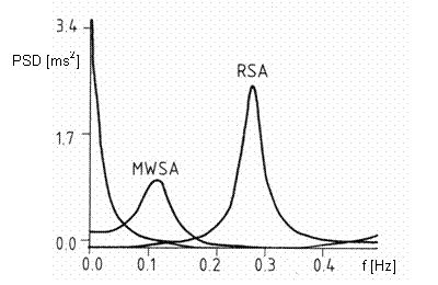 Pri pracovnej záťazi stúpa srdcová frekvencia a intervaly R-R sa skracujú. Pri námahe klesá úmerne so vzostupom srdcovej frekvencie denzita oboch spektier (RSA i MWSA).