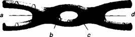 Obrázek 12.4 Z kvantové vřavy se můze v bodě (b) zrodit pár tvořený strunou a antistrunou; v okamziku (c) vsak anihilují - a zkomplikují tak interakci.