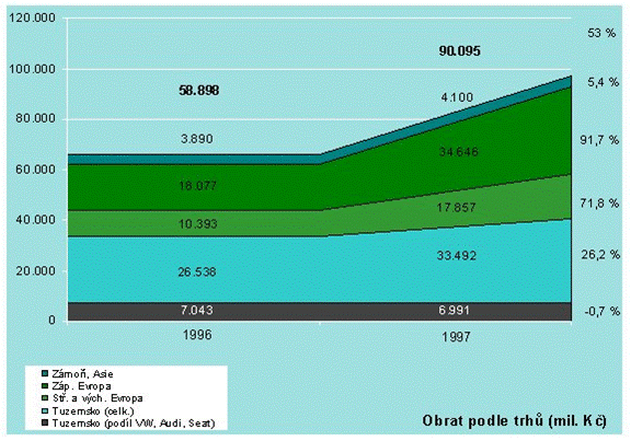 Nárůst obratu o 53 % oproti roku 1996 na rekordní hranici 90 mld.Kč změnil společnost SKODA AUTO a. s. v největsí podnik České republiky a středoevropského regionu. Rovněz podnikovým výsledkem po zdanění ve výsi 1.168 mil. Kč po letech investic do výrobků a výrobních kapacit dosáhla jednoznačně oblasti zisku.