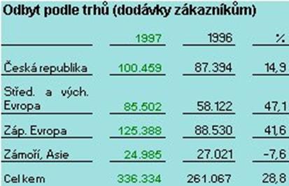 Vedle kladných účinků velkého objemu výroby budou působit i opatření zavedená ke zlepsení výsledku, s tězistěm v optimalizaci materiálových a odbytových nákladů, takze pozitivní trend bude pokračovat a sílit i v roce 1998.