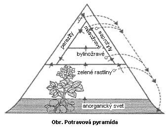 Pohyb energie a hmoty v ekosystému definován vztahem : producent -> konzument (-> predátor) -> reducent