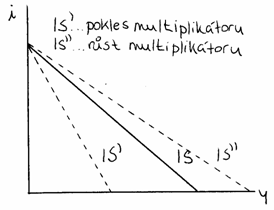 pro Keynesiánce by křivka investic byla téměř strmá (vyznačena čárkovaně)
