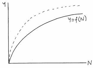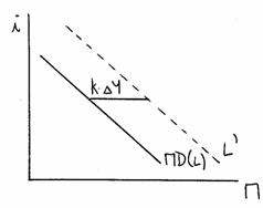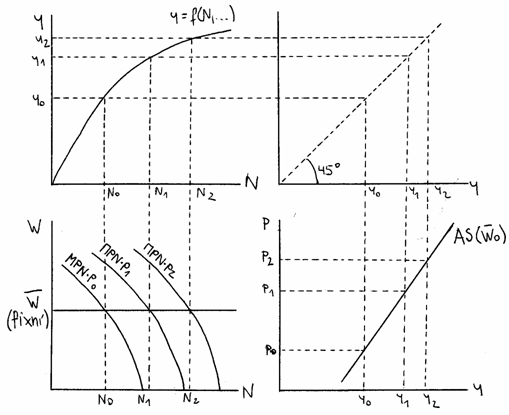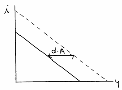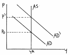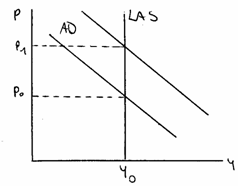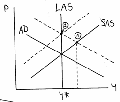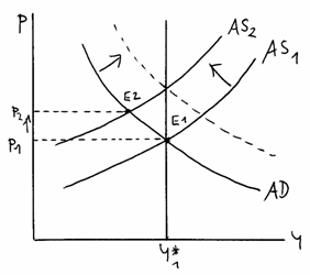 v dlouhém období - posune se křivka AS a produkt se vrátí zpět na potenciální Y*