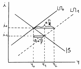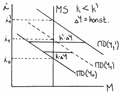 krátkodobě je díky penězní iluzi monetární politika účinná - za 6-8 měsíců se projeví v produktu, za dalsích 6 měsíců se to projeví pouze v cenové hladině (dlouhé období = cca 1 rok)
