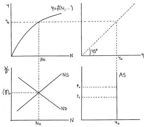 neutralita peněz = peníze nemají dopad na reálné veličiny (jako je produkt, zaměstnanost, reálná mzda)