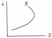 při přílis vysoké úrokové míře někteří lidé uz nemusí spořit, křivka můze být zpětně zahnutá (ale lze ji kreslit i lineárně)