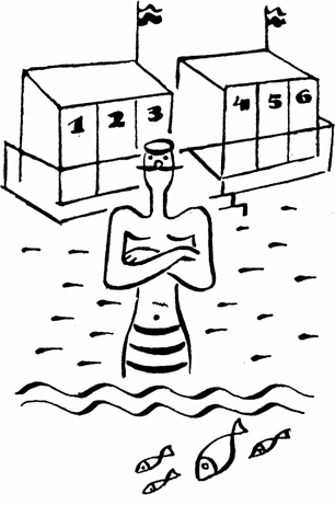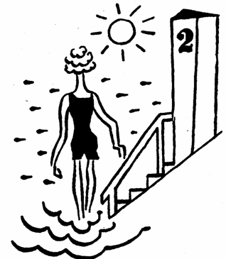Řka to, jal se plavčí mistr sestupovati po schůdcích a vhroutil se do bazénu.