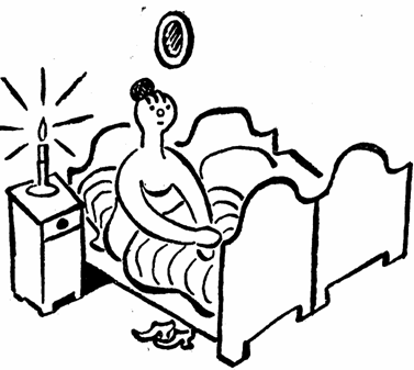 "Nutís mě, abych se vyjadřoval určitěji," děl Antonín, "nuze, jsi záletná zenská a spala jsi dnes v noci u Arnostka. Dobrá, nevyčítám ti těla, ačkoliv je tučné a skaredé, ale potrestám tě za pomlouvačný způsob omluv. Ticho," dodal, kdyz paní chtěla odpovídati, "připoustím, abys zůstala, ale nestrpím tvé řeči."