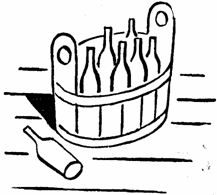 Řka to major uchopil bidélko, jehoz se udívá k rovnání údů při vyučováni plavbě, a zaujav postavení podřepu pěkným útokem srazil vyprázdněnou láhev.