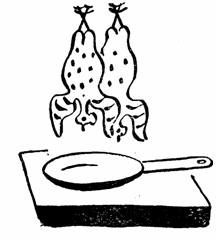 "Víte co, vybéřeme mezi sebou několik krejcárků a koupíme mu slepici, aby si uvařil polévku. Tato krmě, jez se podává sestinedělkám, skrývá a tají v sobě velikou schopnost léčivou."