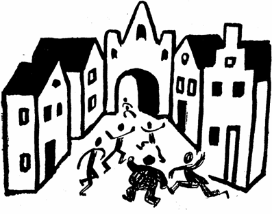 Věru, nezbývalo mu, nez vzíti nohy na ramena a utíkati. Kdyz byla příhodná chvíle a kdyz mohl starý pán vyraziti, dal se do běhu a upaloval az k horní bráně Kotlářské, kde bylo stanovistě vozů. Lidé odsuzujíce horlivě jeho chybu bězeli za ním az do těchto míst. Avsak nikoliv dále! Nikoliv dále, neboť navraceti se od zmíněné brány je starý městský zvyk, jenz se zachovává i při křesťanských pohřbech.