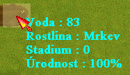 Podrzením pravého tlačítka na rostlině zjistíte kolik má vody a jak je jestě úrodný záhon.