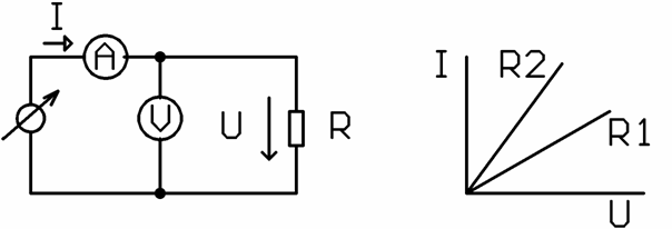 Připojíme rezistor k regulovanému zdroji napětí, pro měření proudu zapojíme ampérmetr A (do série s rezistorem), pro měření napětí voltmetr V (paralelně s rezistorem). Postupně zvysujeme napětí zdroje, do tabulky zapíseme naměřené hodnoty proudu a napětí. Naměřené hodnoty graficky znázorníme.