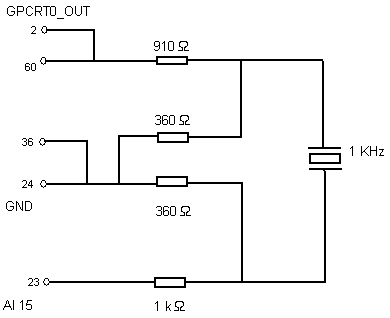 Vstupní napětí je připojeno na výstup čítače 0 (GPCRT0_OUT).