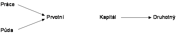 Půda a práce jsou primárním zdrojem přírody, člověk si je přivlastňuje přímo z přírody. Kapitál je výsledkem předchozí výroby a proto je druhotným výrobním faktorem.