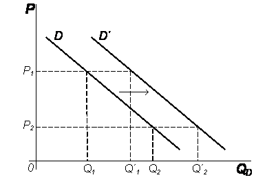 Základní vlastností kazdé poptávkové křivky je její klesající tendence vzhledem ke stoupající ceně. Křivka poptávky je tedy klesající, můze mít lineární či nelineární tvar. Kazdý bod na křivce znázorňuje určité poptávané mnozství za danou cenu. Obr. 2.1 lze chápat tak, ze mnozství poptávky ovlivňuje uzitečnost statku a tím určuje cenu, kterou jsou spotřebitelé ochotni zaplatit za jednotku statku. Zde platí, ze cena je funkcí mnozství: P = f (QD). Na druhé straně platí, ze cena zpětně působí na mnozství poptávky: QD = f (P). Změna ceny je impulsem ke změnám v nabídce a poptávce a změně jejich vzájemné proporce. Pro větsinu statků bude poptávková křivka klesající, neboť při nízkých cenách mají lidé tendenci kupovat větsí mnozství a opačně poptávané mnozství klesá s tím, jak stoupá cena. Poptávané mnozství je nepřímo úměrné vzhledem k ceně. Tento vztah mezi cenou a poptávaným mnozstvím je odrazem zákona klesající poptávky. Spotřebitelé budou zvysovat své nákupy, za jinak stejných podmínek, pokud bude cena klesat a kupující snizovat své nákupy, bude-li se cena statku zvysovat.