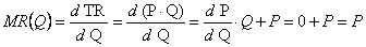 Jak bylo výse uvedeno, firma působící v podmínkách dokonalé konkurence není schopna ovlivnit trzní cenu. Protoze v podmínkách dokonalé konkurence je schopna prodat libovolné mnozství za trzní cenu, tak platí: MR(Q) = P. Pokud se firma rozhodne prodat dalsí jednotky, tak z prodeje libovolné z nich vzdy realizuje dodatečný příjem o velikosti trzní ceny. Platnost uvedeného vztahu lze snadno ověřit i matematicky.