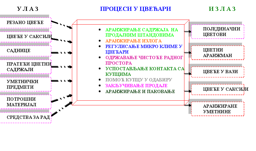 ц) Основни процеси у раду и пословању цвећаре су:
