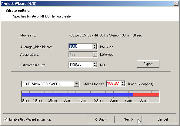 U sledećem prozoru se jasno vidi da je film preveliki za 1 CD: