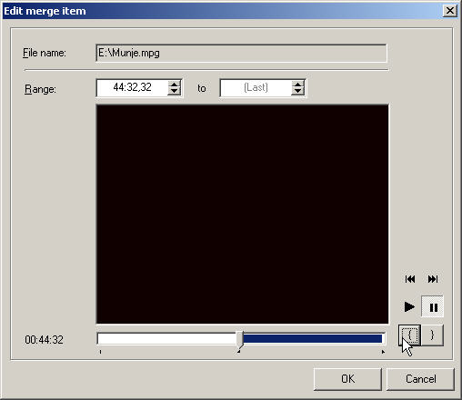 Odvuci potenciometar otprilike u sredinu, izaberi scenu gde treba da usledi rez, i klikni na desnu zagradu )