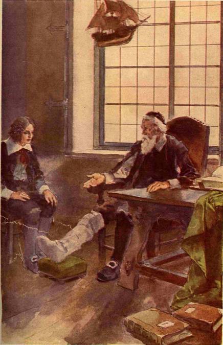 Jeho otec, jenz přisel s ním, naklonil se ke mně a pravil stejně vázně jako starostlivě: "Mladý muzi, neměl byste jiz vstupovati na loď, abyste plul po moři. Příhody, které jste s námi prozil, pokládejte za jasné a viditelné výstrahy před mořeplaveckým povoláním. Nemáte se státi námořníkem. Tusím, mladý muzi, ze vás na vsech vasich námořních cestách bude doprovázeti jenom zklamání, neúspěch a protivenství. A to tak dlouho, dokud se nesplní předpověď vaseho otce."