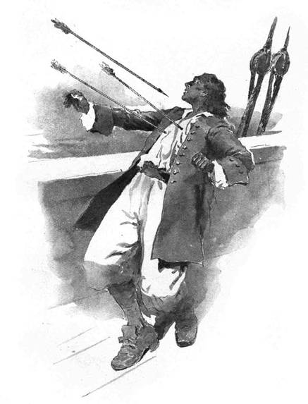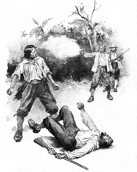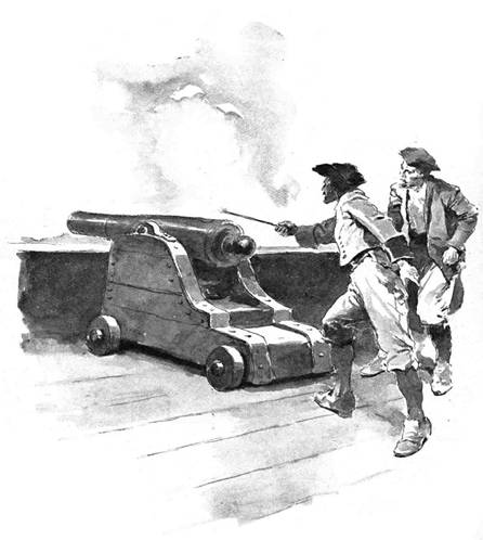 Netusili vsak, jak jsme se opevnili. Nás starý lodivod, který nám velel a zároveň prováděl vsechny opevňovací práce, nechtěl, abychom stříleli, dokud se horda nepřiblízí na dostřel pistole. Prozatím nám poručil, abychom přesně mířili a vypálili společně, na povel.