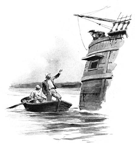 Pracovali jsme vytrvale, ale voda v lodi ustavičně stoupala. K ránu jsme viděli, ze pracujeme marně a ze se loď potopí, ačkoli bouře poněkud povolila. Pohroma se blízila tak rychle, ze jsme nemohli doplouti ani do vnitřního přístavu. Kapitán se rozhodl přivolati pomoc střelbou z děl, a opravdu, lehká loď, kotvící nedaleko nás, poslala záchranný člun. Veslaři se vydávali největsímu nebezpečí, neboť loďka se na neklidném moři nemohla ani přiblíziti k lodnímu boku. Po velké námaze posádky člunu se nám podařilo hoditi jim se zádi lano s bojí na konci. Veslaři se ho zmocnili a přiručkovali po něm i s člunem az pod nasi zad. Potom jsme naskákali k nim.