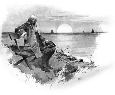 Kapitánův syn, přítel, který mi po prvé uměl dodati tolik odvahy, poklesl nyní hlouběji na mysli nez já. Asi třetího nebo čtvrtého dne po nasem návratu do Yarmouthu přisel ke mně - neboť jsme kazdý bydlil jinde - a ptal se mne náramně změklým hlasem, jak se mi daří. Tvářil se smutně a neustále klopil hlavu. Vypravoval svému otci kdo jsem a ze jsem tuto plavbu podnikl pouze na zkousku, abych se dostal do ciziny.