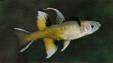 bright yellow and bordered in black with a white tip at the end. The caudal fin
