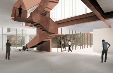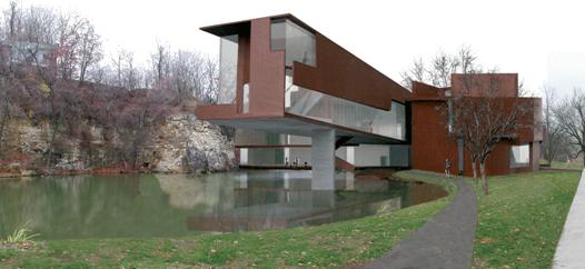 bluffs where it breaks up. The new building straddles these two morphologies.