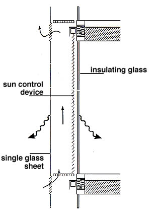 ventilated air cavity between an inner sheet of insulated glass and an outer