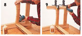 seat supports and bottom rail pieces using 2-1/2" deck screws and glue.