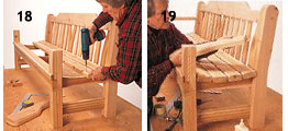 13. The back slats are now set into the dado of the 2" x 4" bottom back seat rail, at 2-1/2" intervals.These can be adjusted as you proceed.