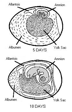 By breaking a fresh egg and an egg incubated for one day into dishes and then making windows in eggs incubated for 2, 3, 4, 5 and more days, the sequence of growth and development of the chick embryo can be followed easily.