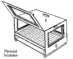1/2" x 4' x 6' A-C ExteriorPlywood 3/8" x 3/4"x 8' Pine 3/4" x 1½" x 13' Pine 3/4" x 3¼" x 4' Pine 1/2" x 3/4" x 8' Pine 1/2" x 18" x 27" rigid insulation board 18" x 27" heavy duty aluminum foil 1/2" x 30"semi-rigid plastic pipe 10" x 20" single strength window glass 10" x 14" single strength window glass 1½" round wooden drawer pulls Metal drawer pulls (cup type) 2" hooks with eyes 8' felt weatherstripping 1/4" x 1/2" 20" x 27" -¼"hardware cloth vent covers - sheetmetal Incubator electrification kit* Attachment plug No.18 - 2 flexible service cord Duplex outlet for surface mounting Small porcelain knobs for heating element 4" x 1" flat hinges Water pan-minimum 360 sq. in 1/8" x 16½' steel rod 3/16" x 8'steel rod Assorted nails and screws Waterproof wood glue |