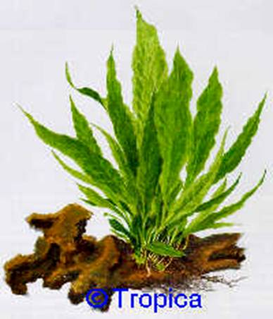found attached to roots and rocks in Nature. The olive green leaves grow from