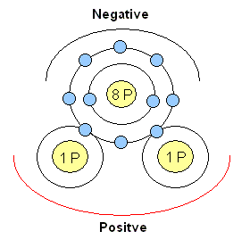 When oxygen and hydrogen combine to make water, a covalent bond is formed between the atoms. In a covalent bond, the atoms to form a molecule with shared electrons. In a water molecule the electrons are shared unequally. There are more electrons occupying the space around the oxygen atom than the hydrogen atom. The oxygen end of the molecule has a net negative charge, while the hydrogen end has a net positive charge. Because of the unequal sharing of electrons opposite charges are produced. The unequal electrostatic forces bond atoms of the water molecule chemically.