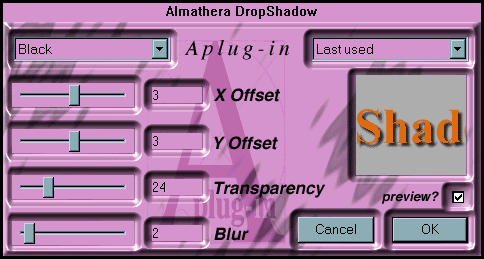 The drop-shadow plug-in has four slider options, as well as a drop-down list for selecting the colour of the shadow: