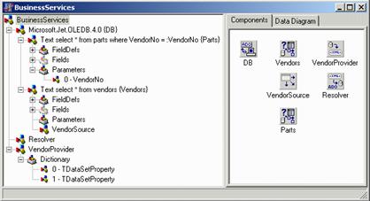 TXMLProvider and TXMLADOResolver on the design window of BusinessServices
